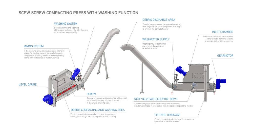 Proven by years of operation in various conditions, highly efficient equipment for compacting, washing and transporting waste from sewer grids.
