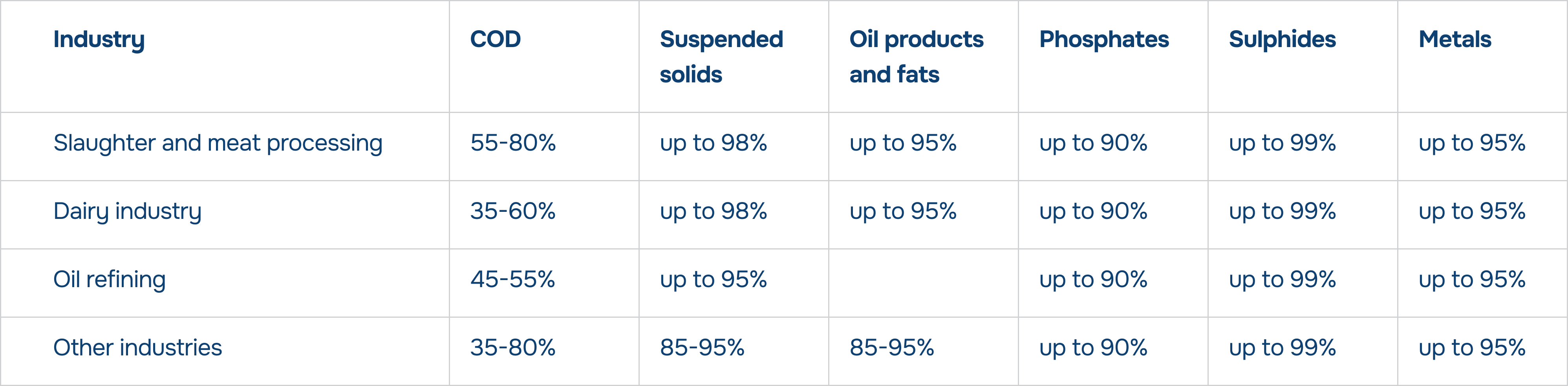 Effective separation of oil products, suspended solids, and fats help to increase performance and treatment quality.