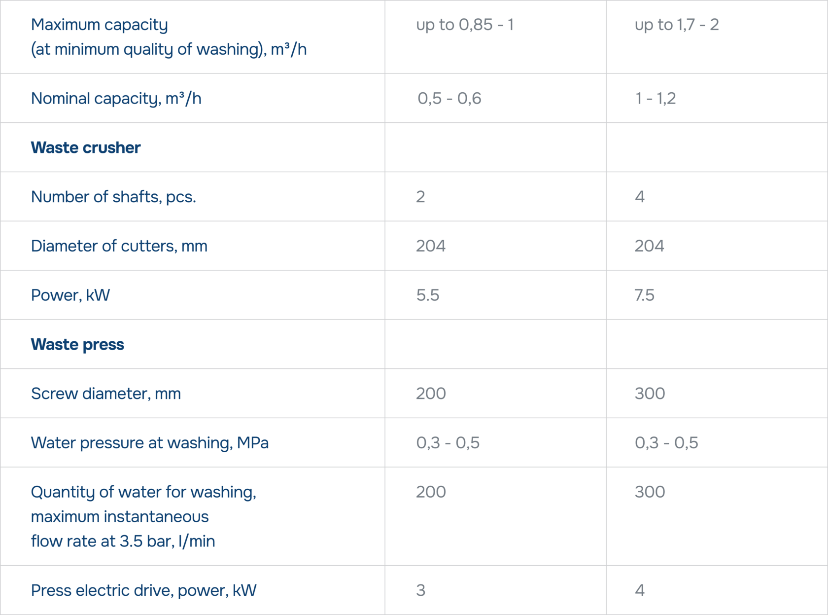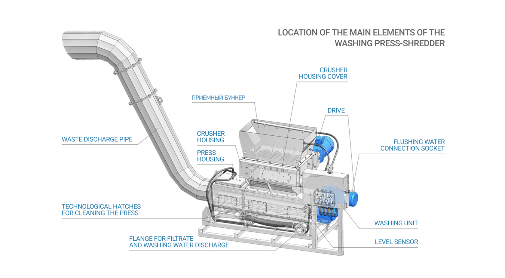 Depending on the customer's needs and characteristics of the waste - application/setting of different types of washing: irrigation of the cutters, the housing in the squeezing zone and the housing in the feed zone of the waste, washing out of organic substances.