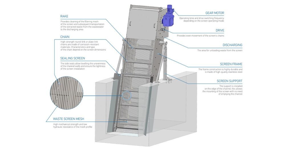 Back Raked Screen are the most optimal and reliable equipment for the extraction of large and medium-sized contaminants from treated water.