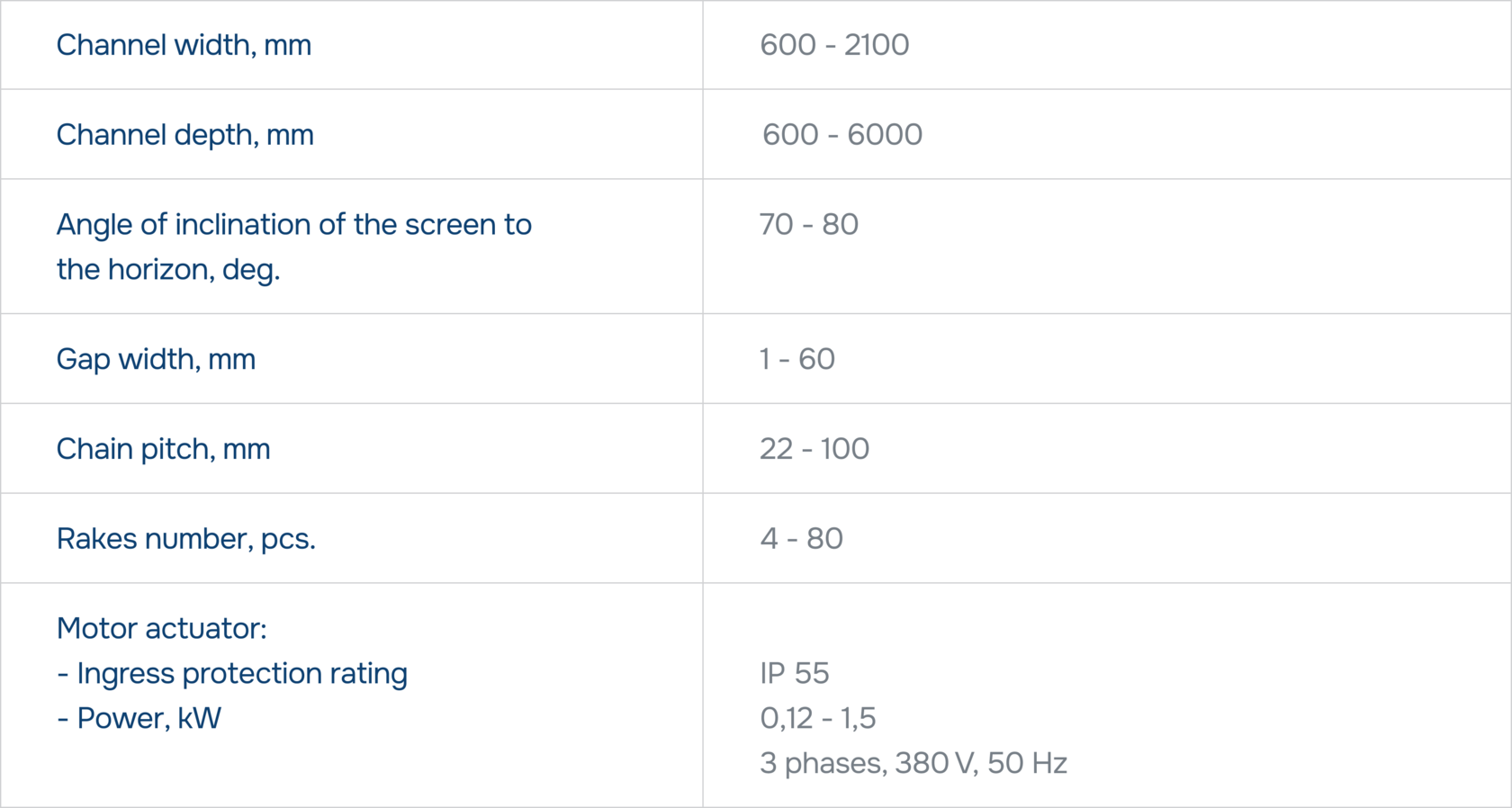 The technical features of the grating make it one of the most effective solutions for use in water intake structures and reclamation pumping stations.