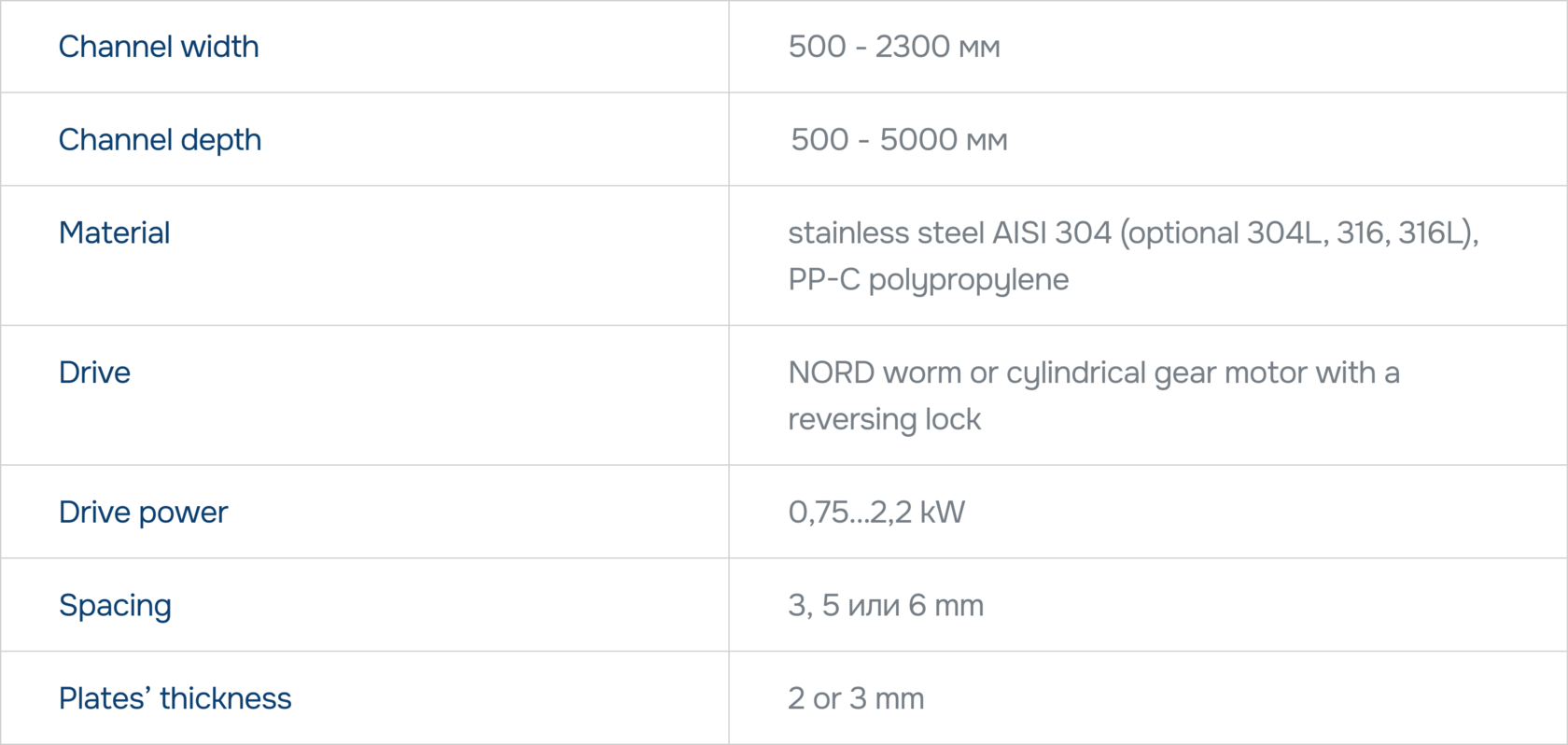 fine wastewater treatment – minimum spacing width is 3 mm;